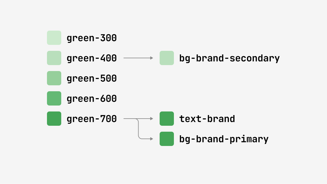 - Contextual colors — variables used in specific components: button-primary-background, input-border.