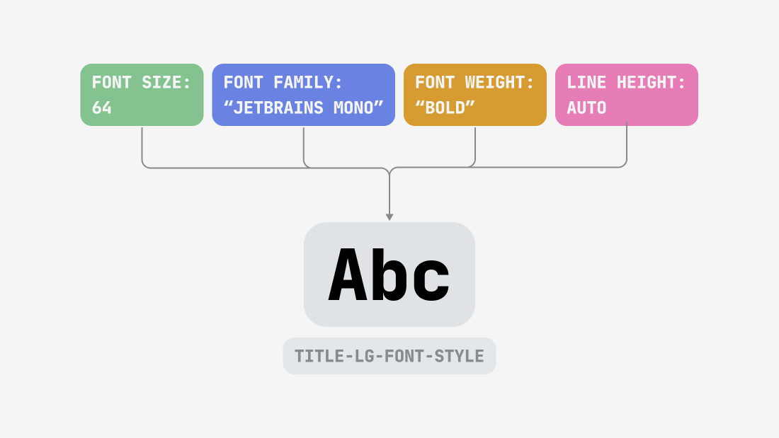 If one color in a design system consists only of a color code, for example #FF0022, then one font style consists of several parameters: